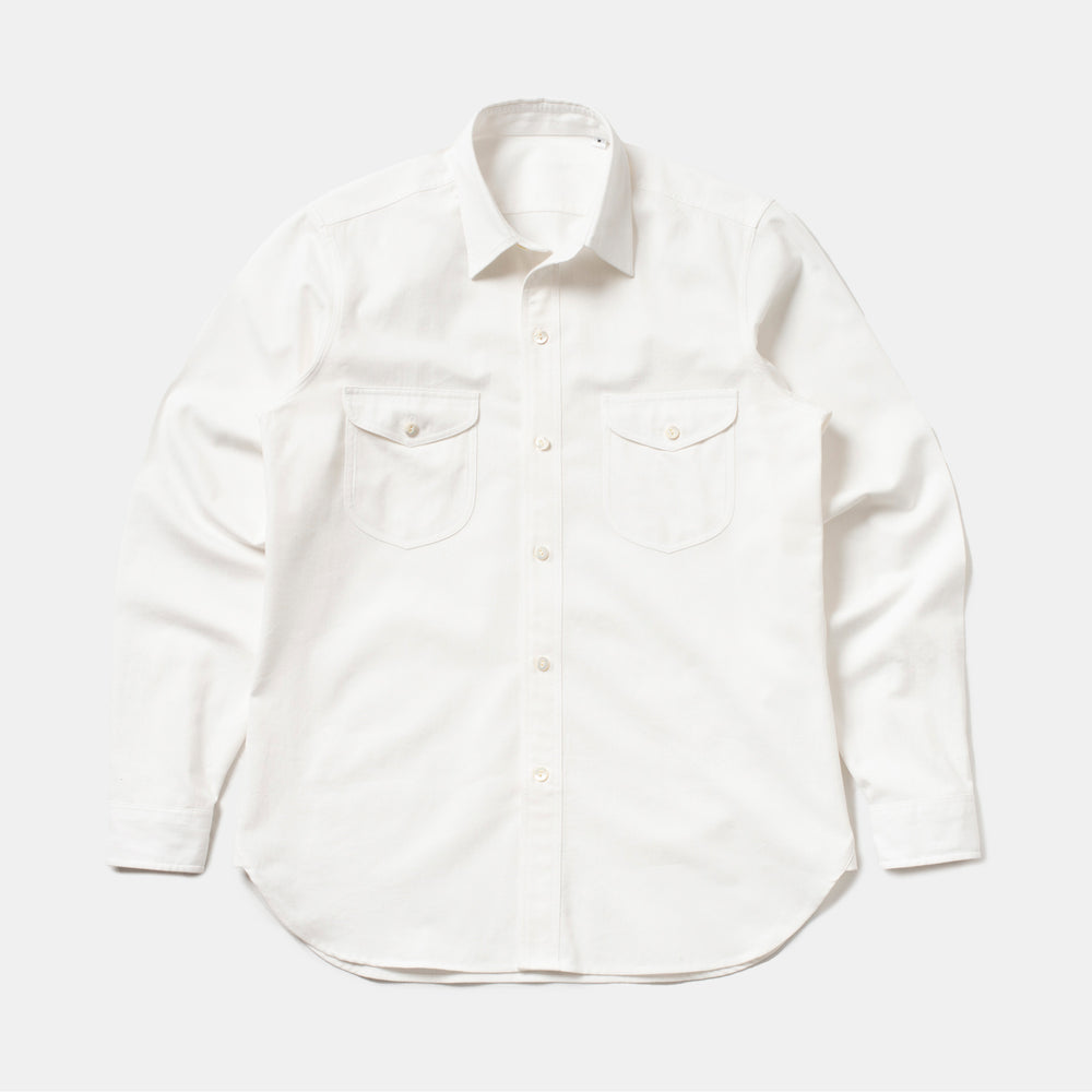 Teardrop Work Shirt Made-to-Order White Chalk Indigo Linen