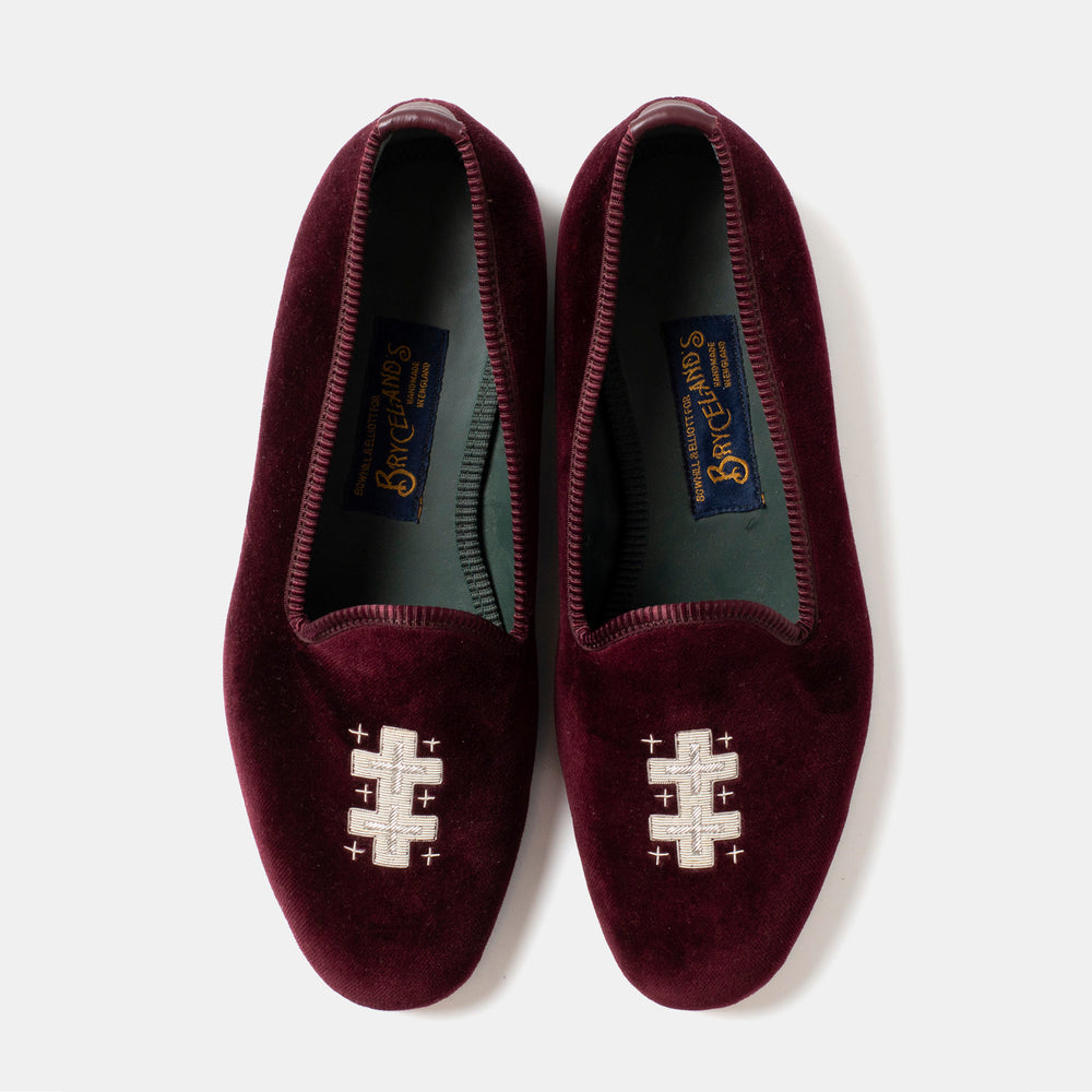 Bryceland's x Bowhill & Elliott Velvet Slippers Wine
