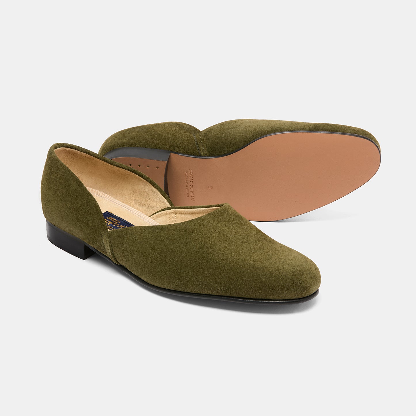 Bryceland's x Bowhill & Elliott Grecian Slippers Olive Suede