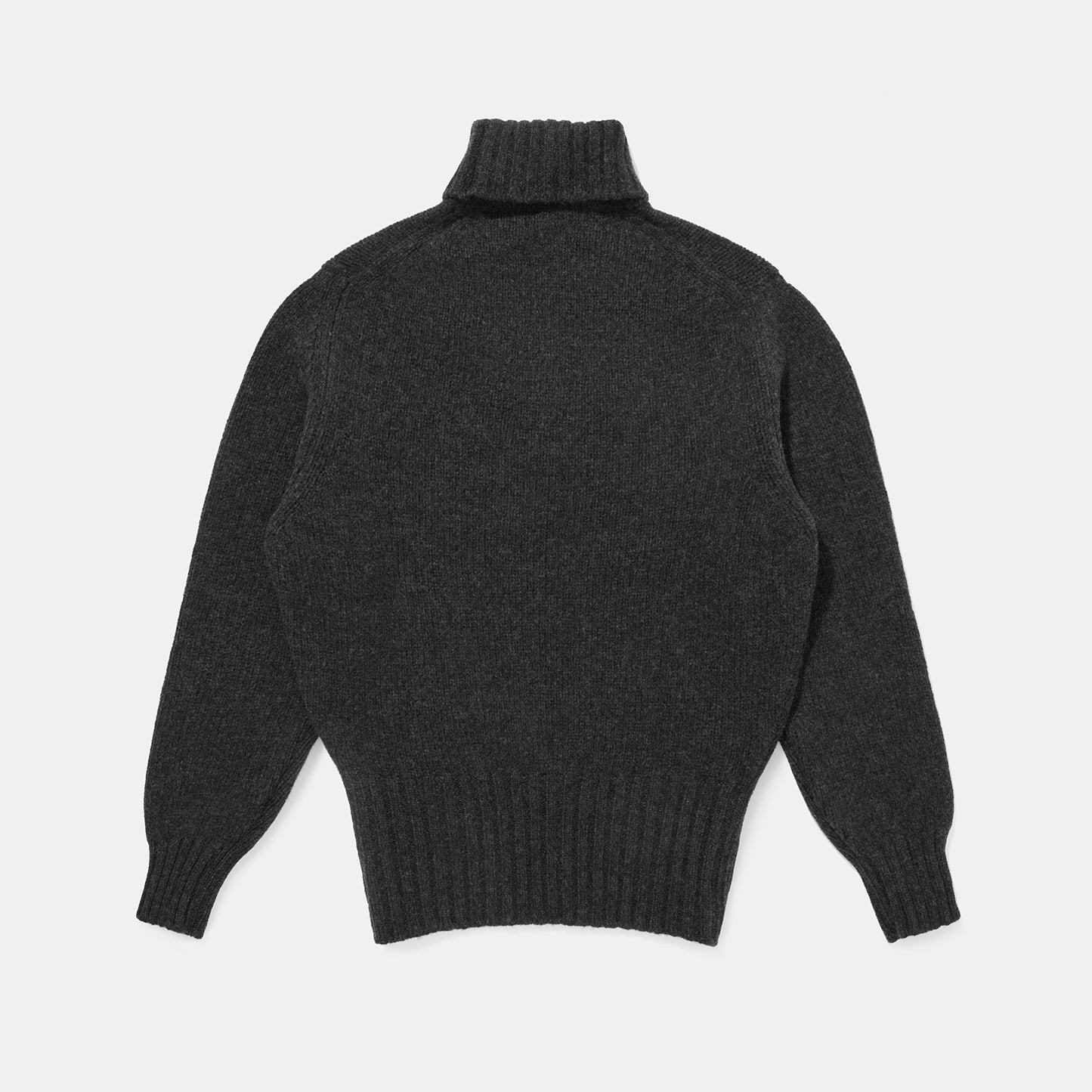 Our ‘RAF’ roll-neck is produced in Scotland to our house pattern; inspired by the knitwear issued to British sailors and airmen during WWII, refined to work proportionally with a tailored wardrobe, as well as more causal items.