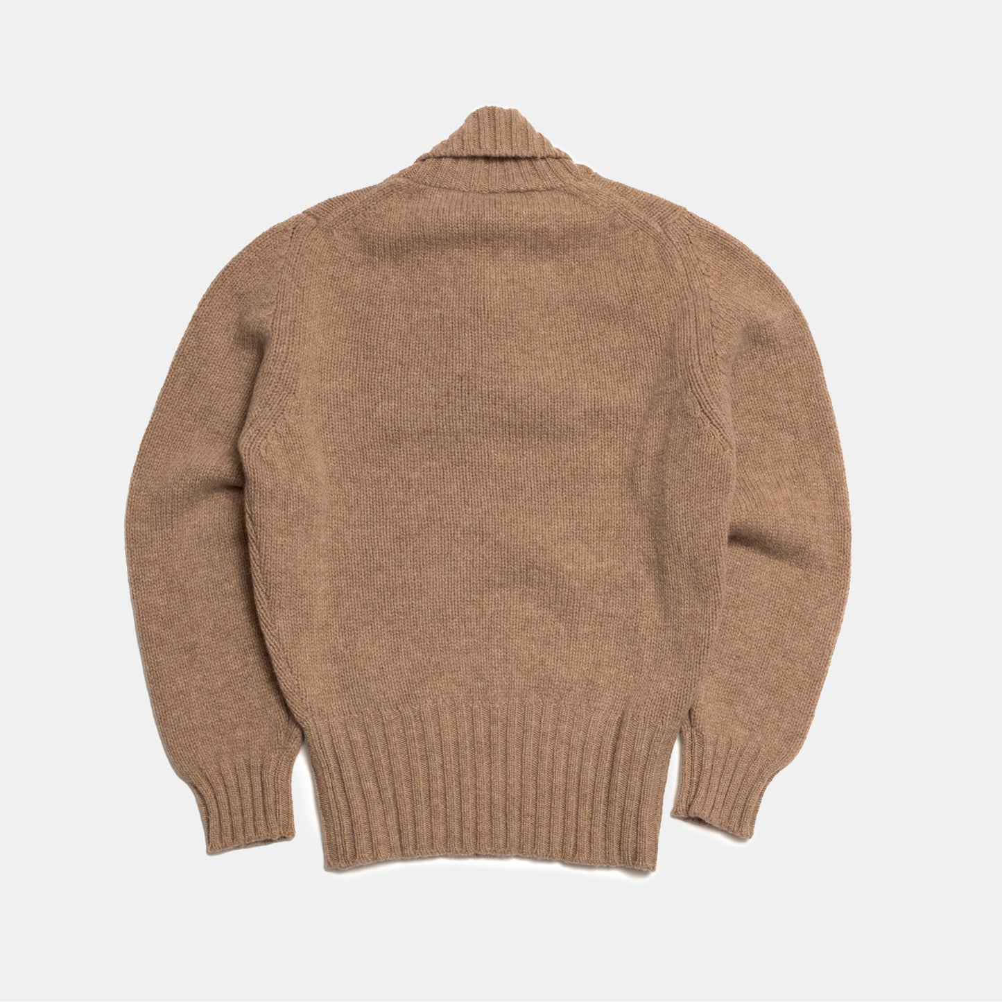 Our ‘RAF’ roll-neck is produced in Scotland to our house pattern; inspired by the knitwear issued to British sailors and airmen during WWII, refined to work proportionally with a tailored wardrobe, as well as more causal items.