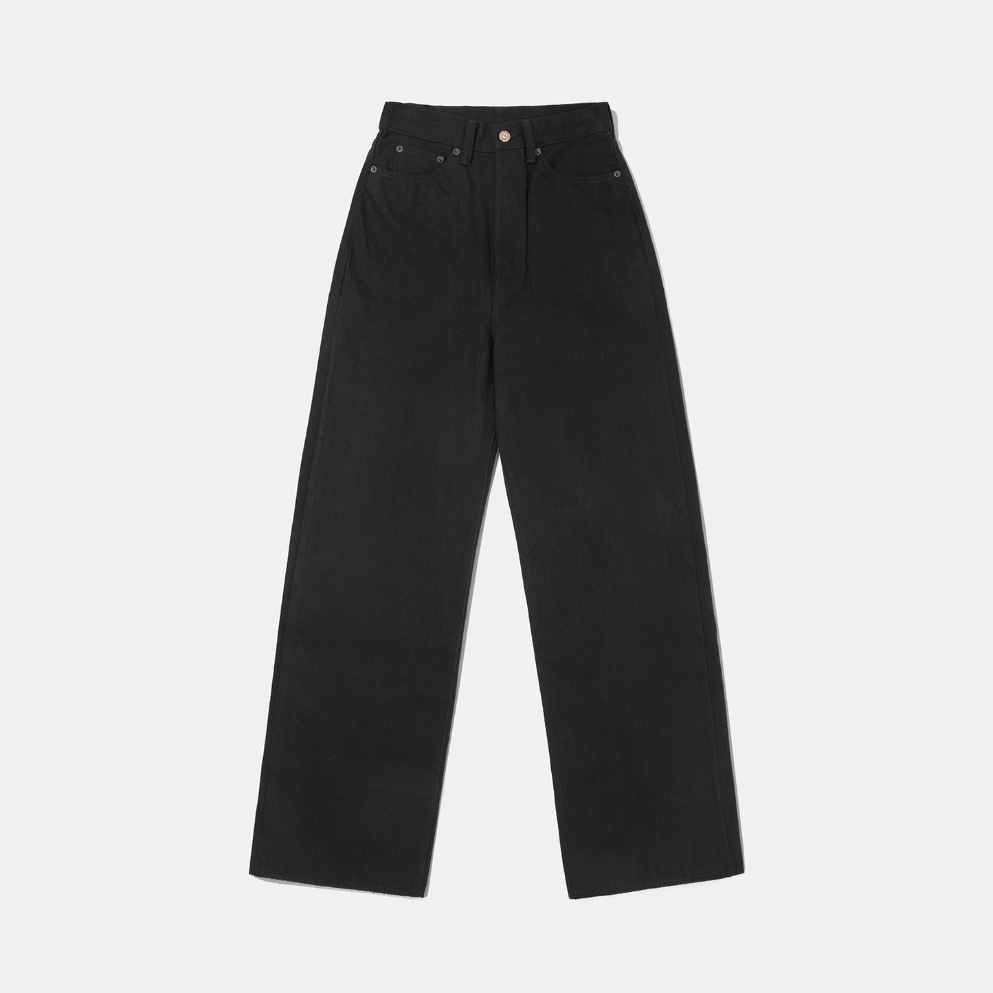 Cut from 11oz Unsanforized selvage twill, it caresses the figure from waist to hip, and drapes through a wide and comfortable leg.