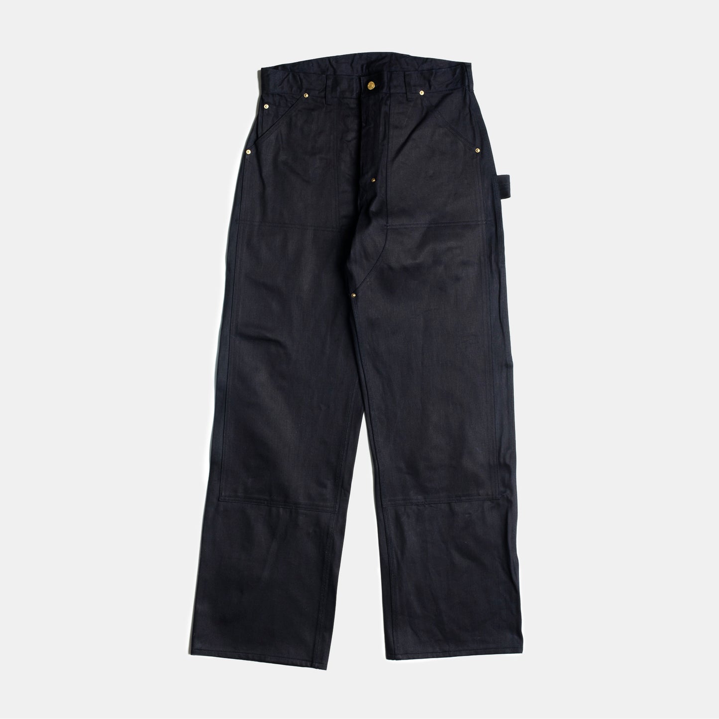 Our pattern, released under our Bryce-Alls collection, we believe is the perfect balance of workwear, fit and fabric. With mid to high rise, the waistband sits formally just above the hip giving shape and proportion before falling into a full leg. The ‘double-knee’ front starts at the waistband, forming the front pockets and finishing at the shin. The defining utility pockets and loops are all in place and finished with brass hardware and zip-fly.