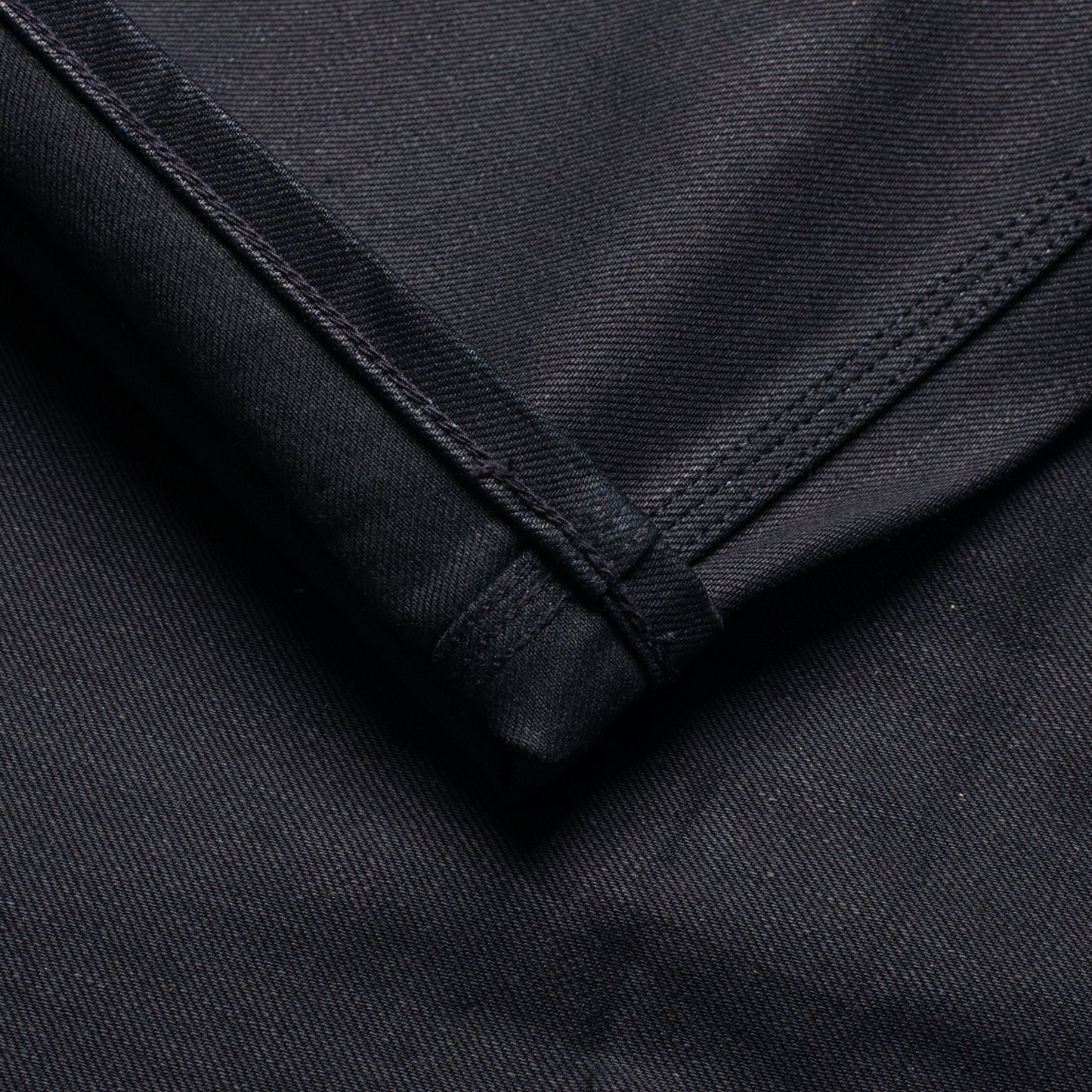 The 11.5oz denim uses an indigo/black warp & weft, which, initially gives them a midnight blue, verging on black natural state. After washing and repeated wear, the shade lightens; glowing a rich blue on a black background before revealing the natural while cotton.