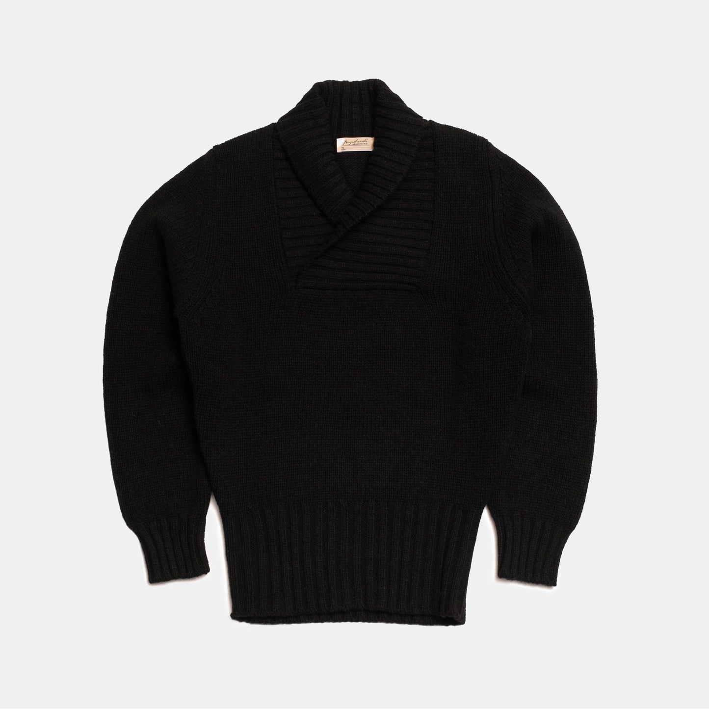 Our ‘RAF’ roll-neck is produced in Scotland to our house pattern; inspired by the knitwear issued to British sailors and airmen during WWII, refined to work proportionally with a tailored wardrobe, as well as more causal items.