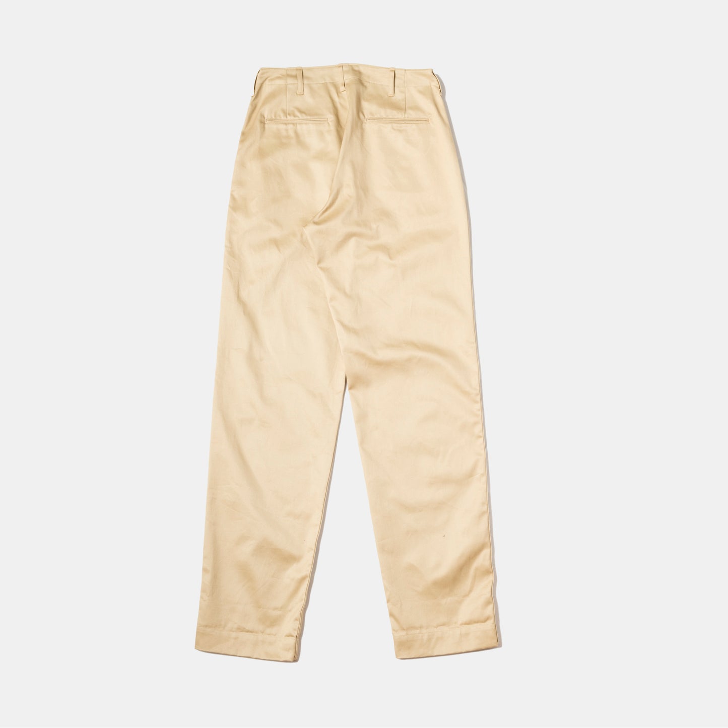 The beauty of the classic ’45 US Army chino is its proportions. Cut high without a separate waistband, a full hip and gentle taper, it eschews fashion in favour of classicism. Paired with a navy sports coat it is all orthodoxy and correctness, but is just as appropriate for a white tee on Sunday afternoon. A generous opening at the cuff allows for a work boot as comfortably as a penny loafer, and when turned up over a sneaker it has the ease it needs to feel comfortable and relaxed.