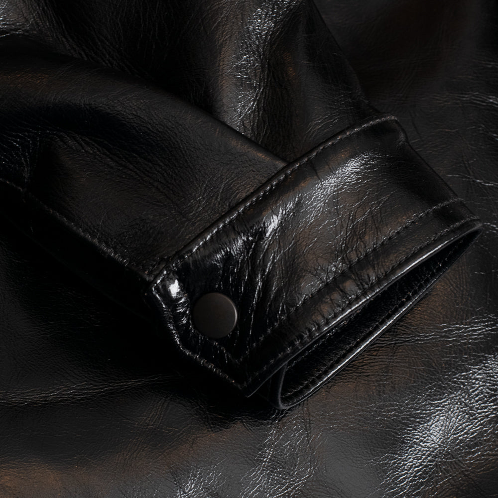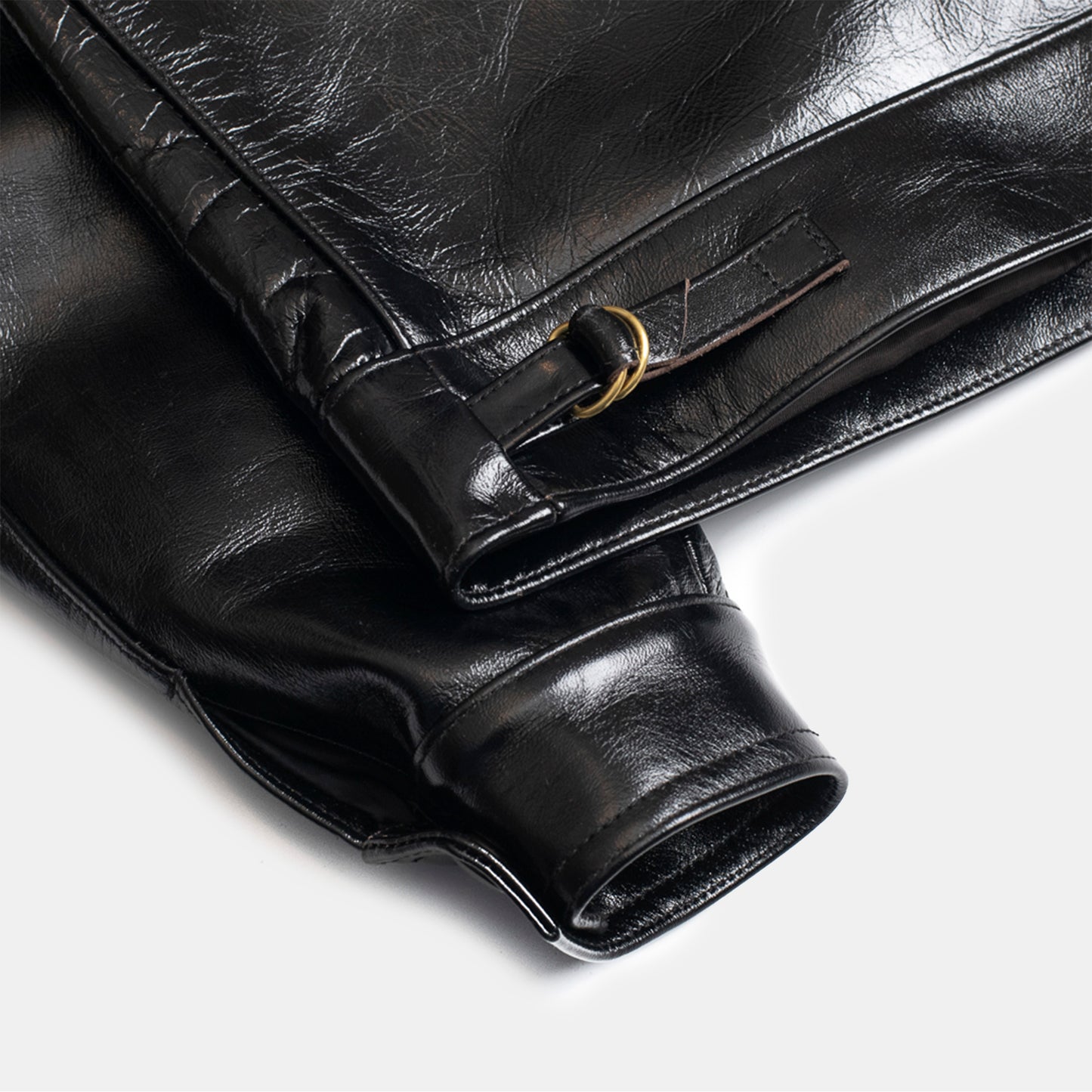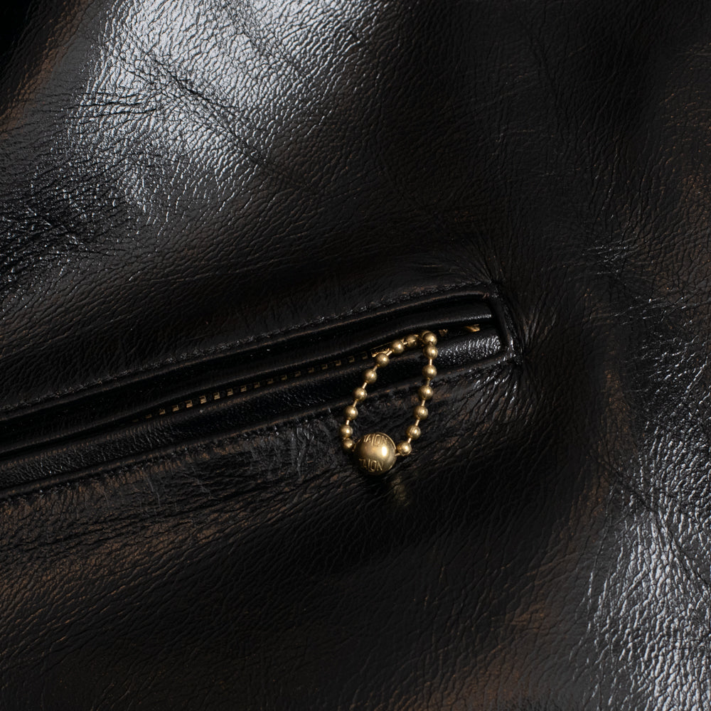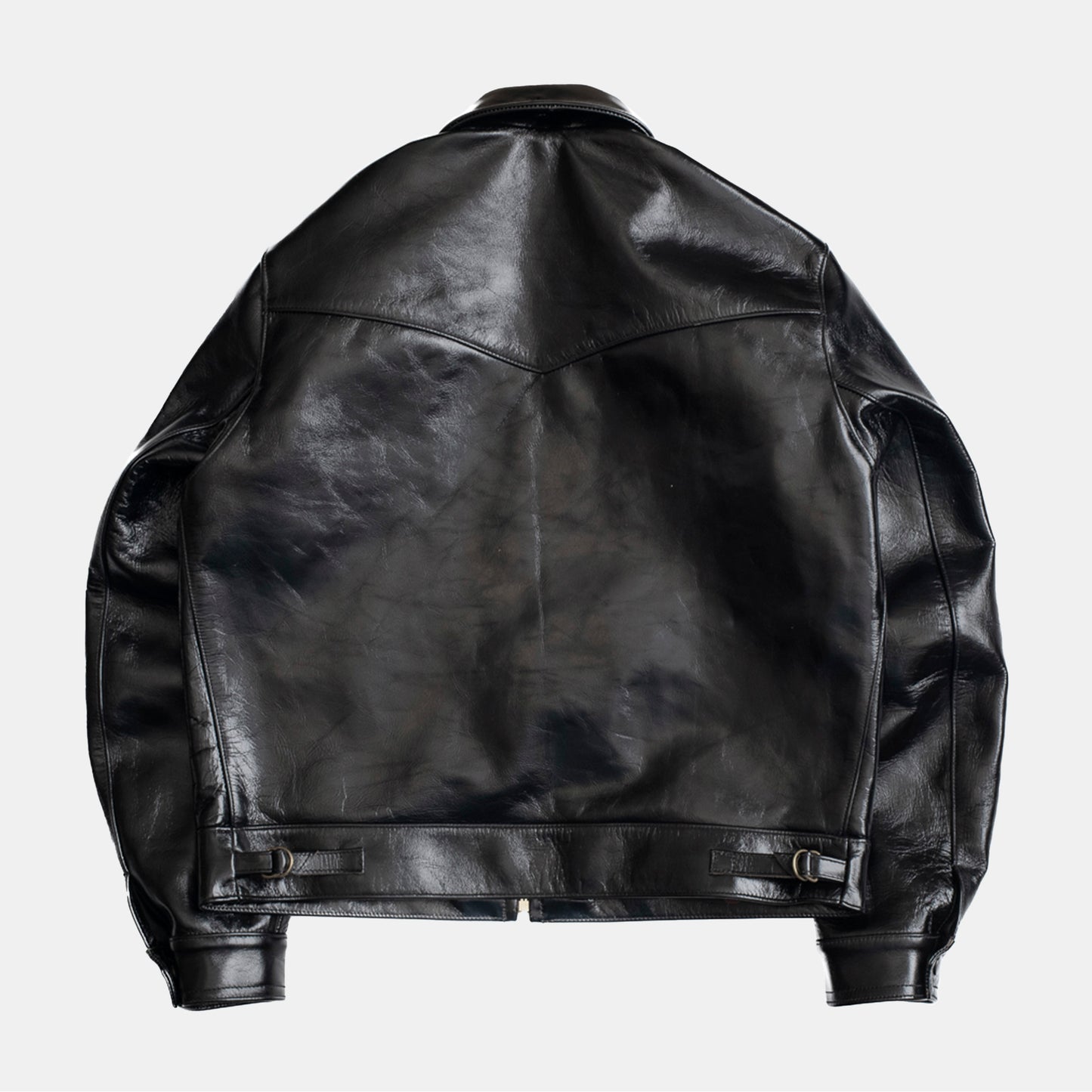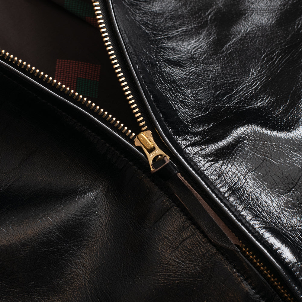 Made in Kanagawa, just outside of Tokyo, using a veg-tanned black over brown horsehide, as the jacket ages it will uncover brown highlights. With solid brass zippers from Talon Japan and our original print rayon lining, the short blouson-type jacket is meant to be thrown over a tee and jeans, a light layering piece that needs a cafe racer and an empty road.