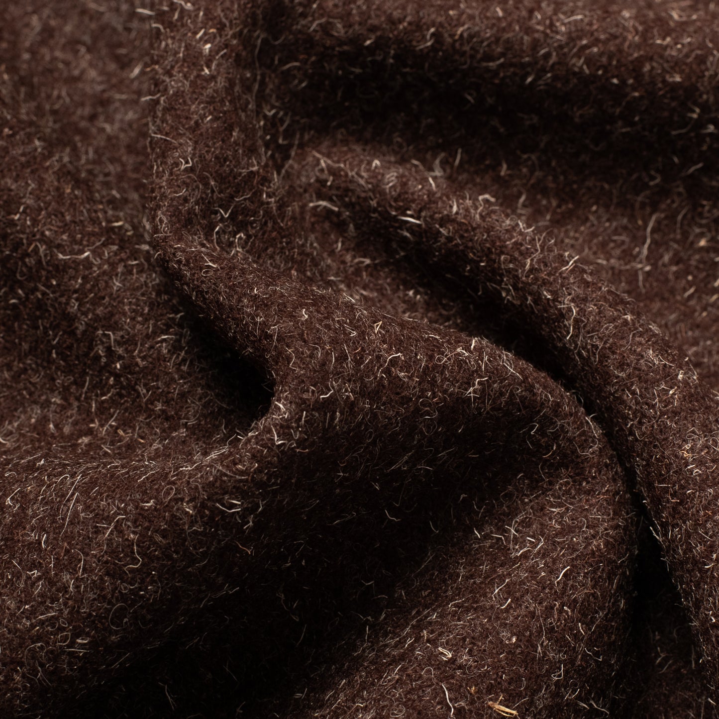The cloth, woven for us in Japan, is a 'Kenpi' (kemp) which retains the natural short, dry, kemp wool fibre which does not dye; these fibres make up the characterful fleck throughout the weave.