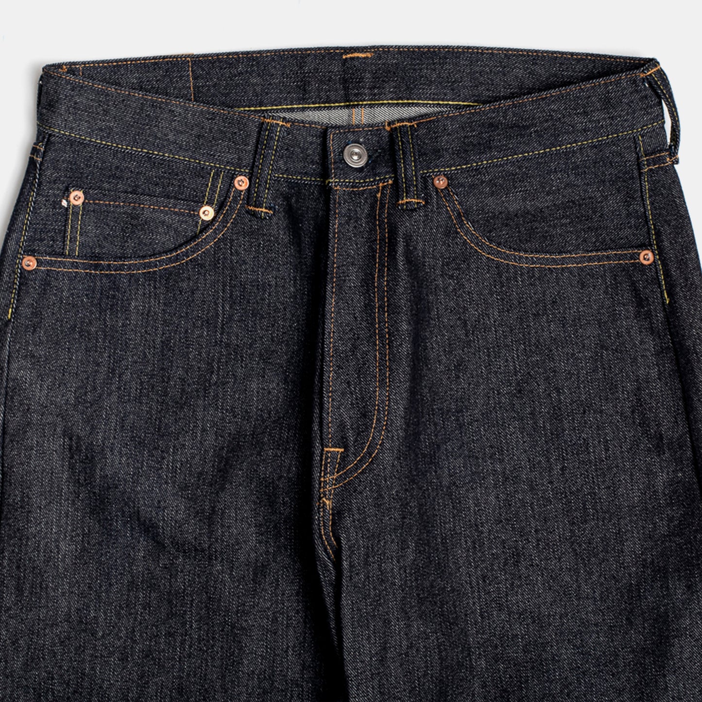 The 133s is the slimmed-down little brother to the 133. Different (as brothers like to be), by being produced in a left-hand twill denim, as opposed to the right-hand twill of our fuller cut. Built on the same block as our 933 black denim, for those that are familiar with it, the 133s share the same slimmer fit, tapered from the knee, while still being comfortable in the top block and thigh in all sizes.