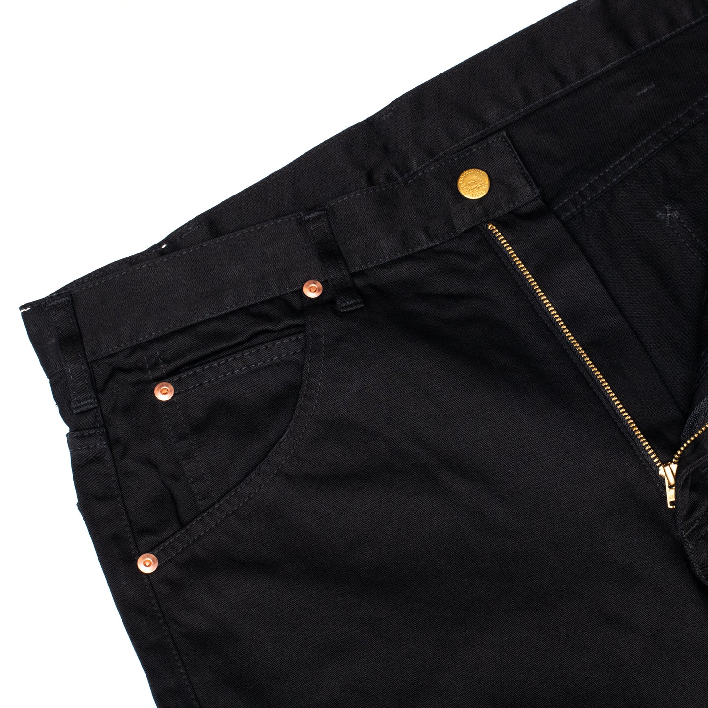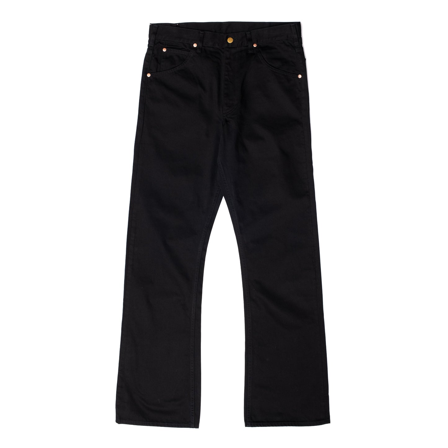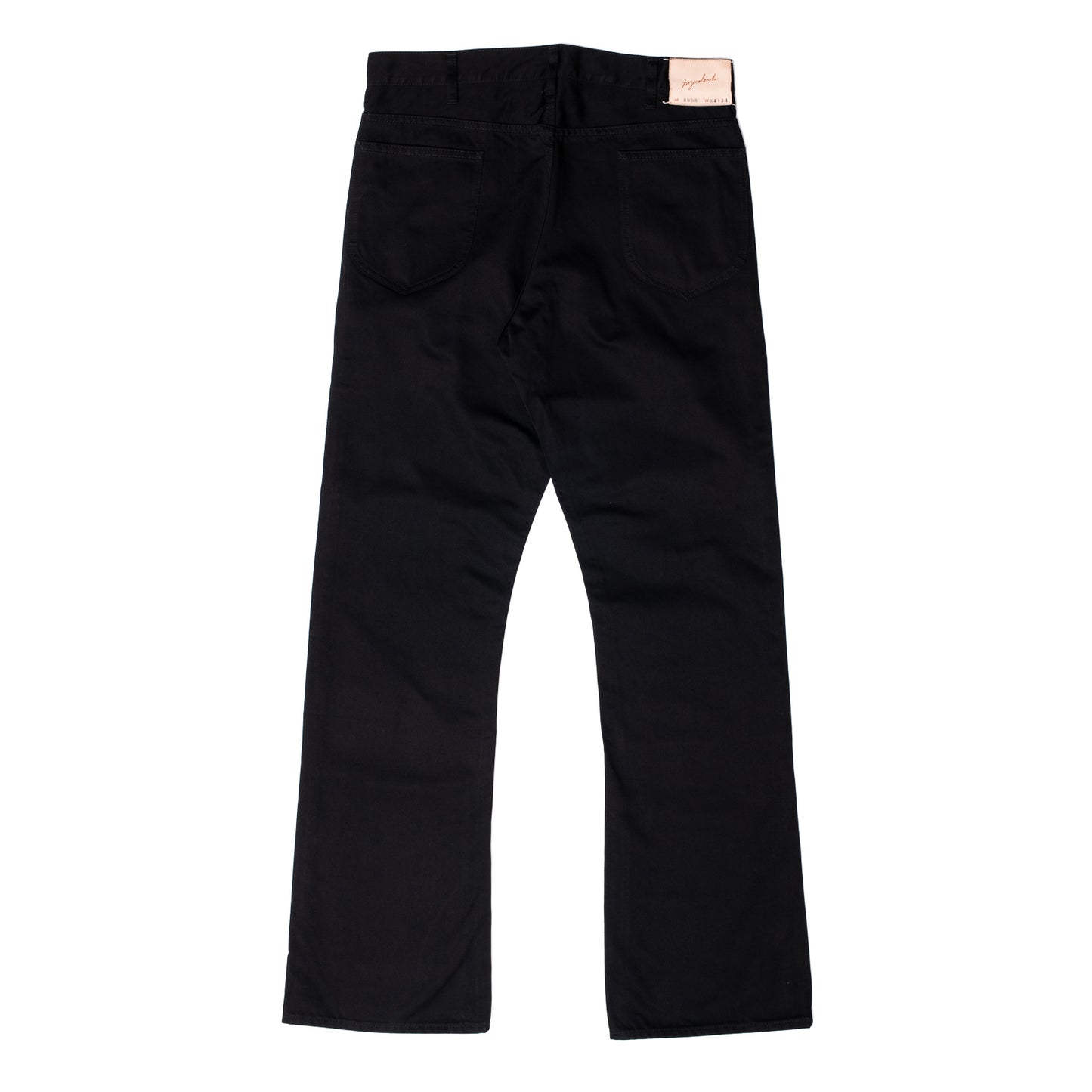 Our first zip-fly 5-pocket model, in keeping with the period of the original example patterned. The zip is a cotton tape and brass teeth “Universal” from YKK Japan.
