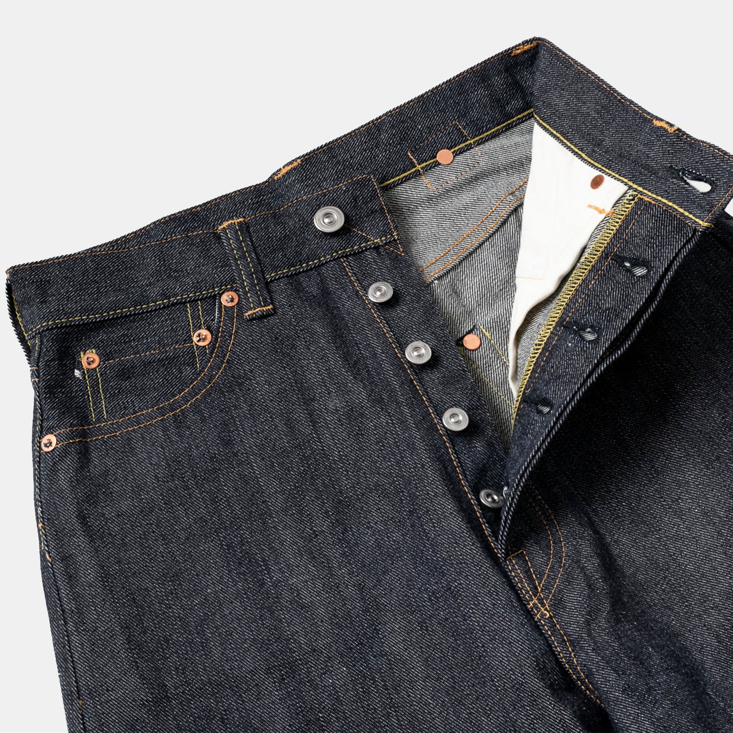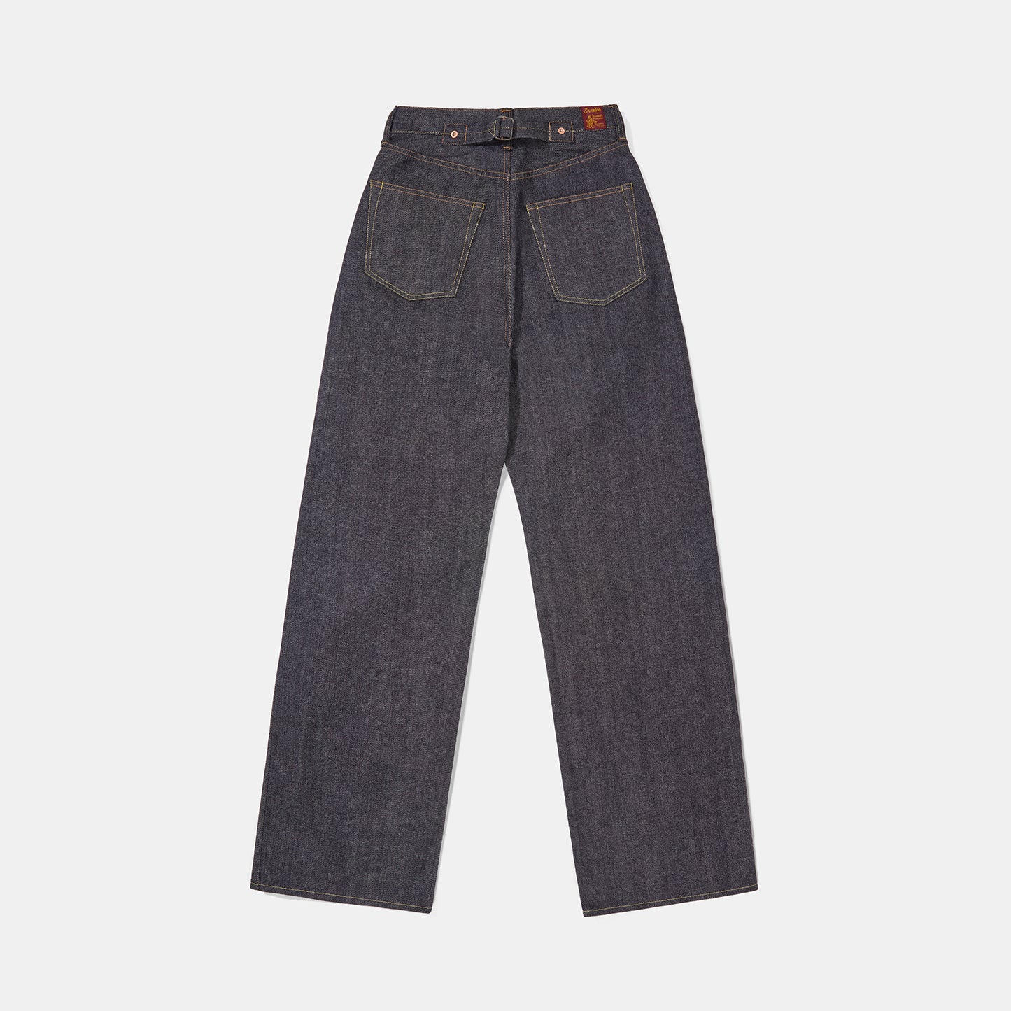 Cut from 12oz unsanforized left-hand twill, giving the denim a texture that is even and smooth. With a softer hand than our usual right hand denim, it caresses the figure from waist to hip, and drapes through a wide and comfortable leg.