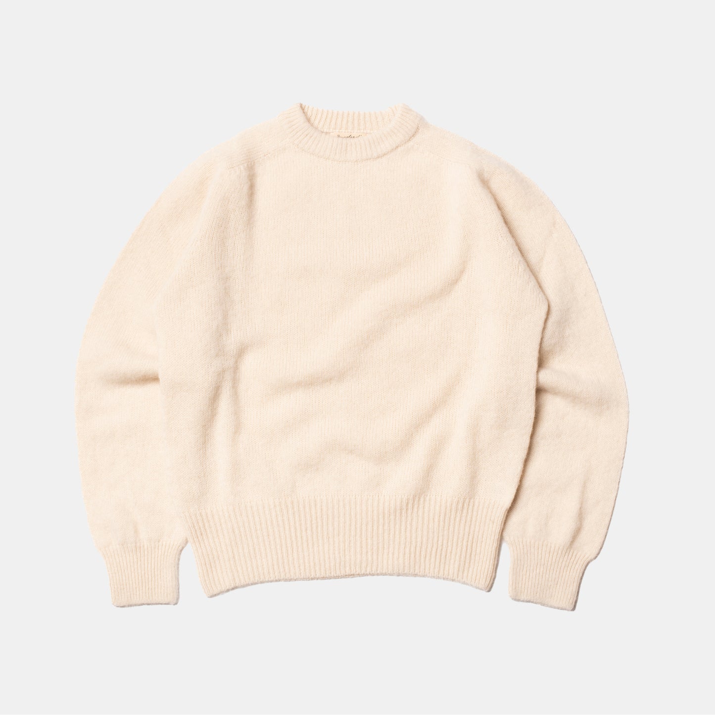 Knitwear is a very personal thing. The tactile quality and homeliness of woven wool resonates on a deeper level compared to other garments; a true companion for colder days. Our "Shaggy Shetland" has been made with this in mind.