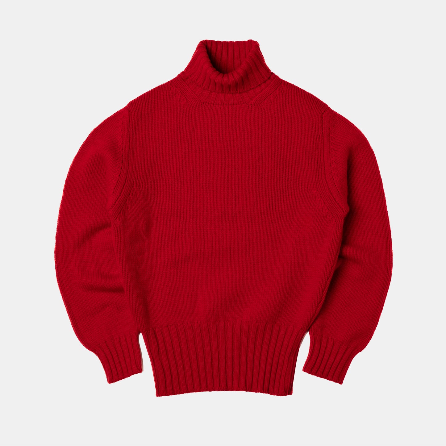 Our ‘RAF’ roll-neck is produced in Scotland to our house pattern; inspired by the knitwear issued to British sailors and airmen during WWII, refined to work proportionally with a tailored wardrobe, as well as more causal items.