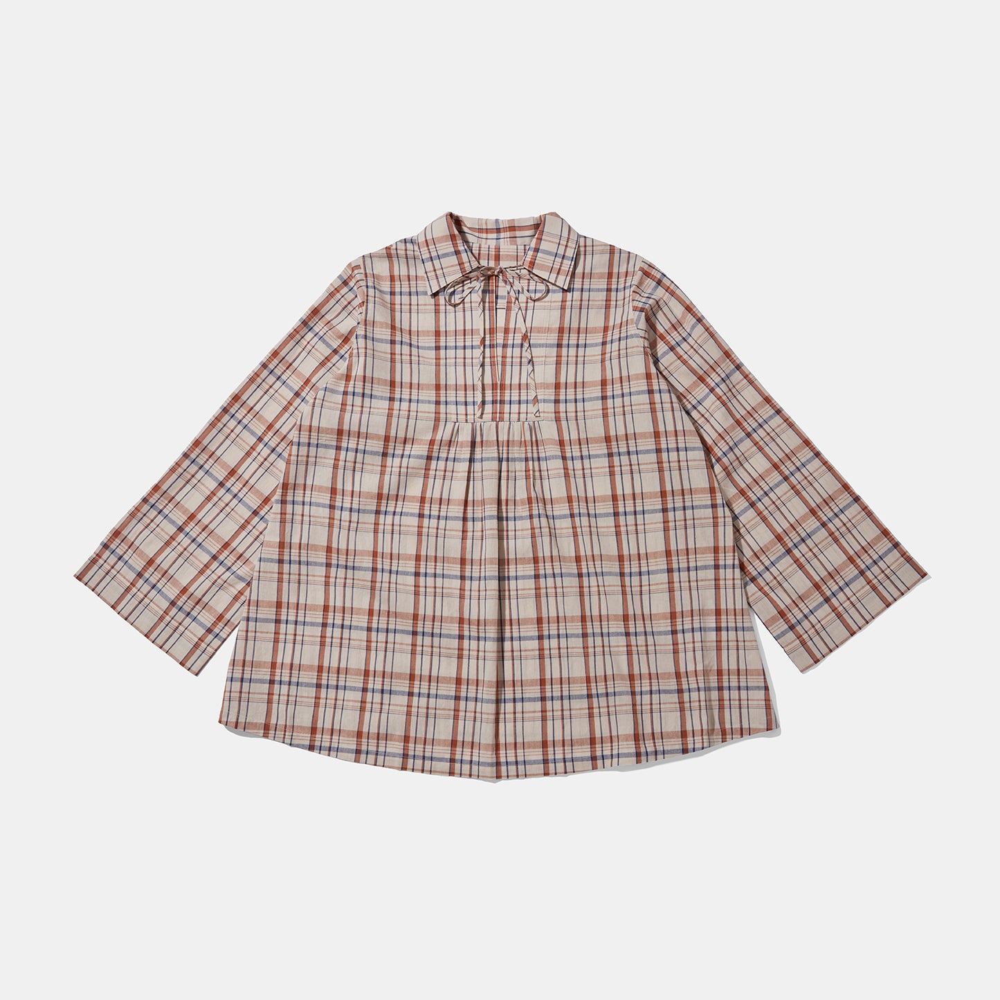 The Holiday Shirt takes its cues from warm summers and spirited women of the 1970s, who roamed with curiosity and dressed with ease. Its slightly flared shape and soft gathers just below bustline gives freedom of movement; three-quarter sleeves roll up or fall loose, perfect for catching summer breeze or strumming a guitar. A detachable self-fabric tie at the neck can be fastened into a bow, or left undone for a more relaxed look.