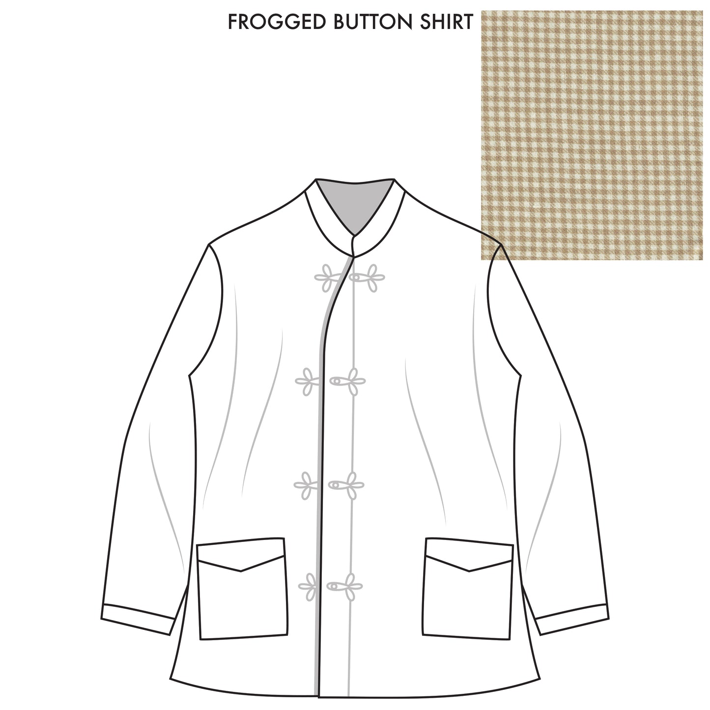 Frogged Button Shirt Made-to-order Tan Puppytooth