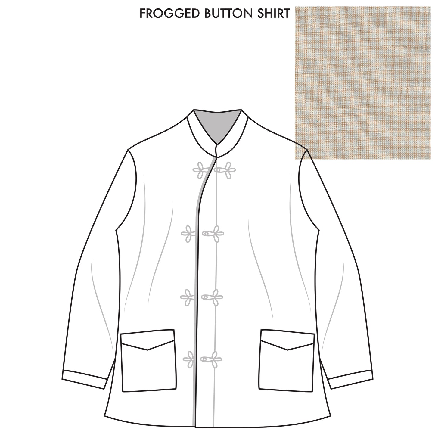 Frogged Button Shirt Made-to-order Tan/Blue Micro Check