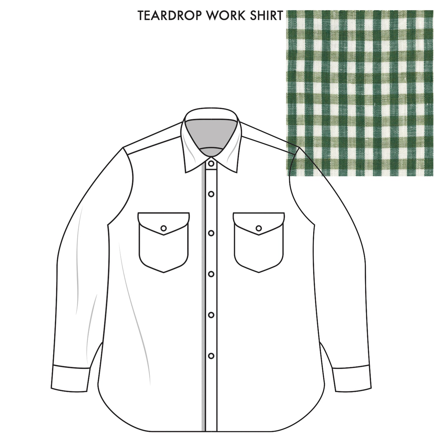 Teardrop Work Shirt Made-to-Order Light Green Gingham Linen