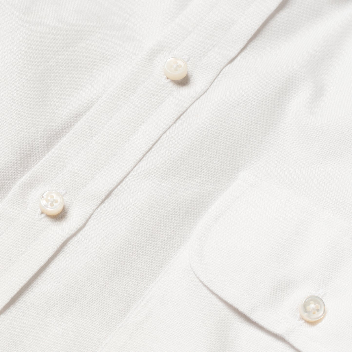 My “Perfect OCBD” is how that workhorse of a shirt should be, with a high rolling collar and an extra button at the back of the collar to keep everything in place. A wider box pleat and locker loop for a little ease and grace through the back, long tails with gussets to stay firmly seated in the trouser. Shirred tucks, a throwback to the beautiful “Arrow” shirts of the 1930’s, on a curved, single button cuff, that thanks to its design follows the shape of the wrist. Mother of pearl buttons, finish it as it should be.