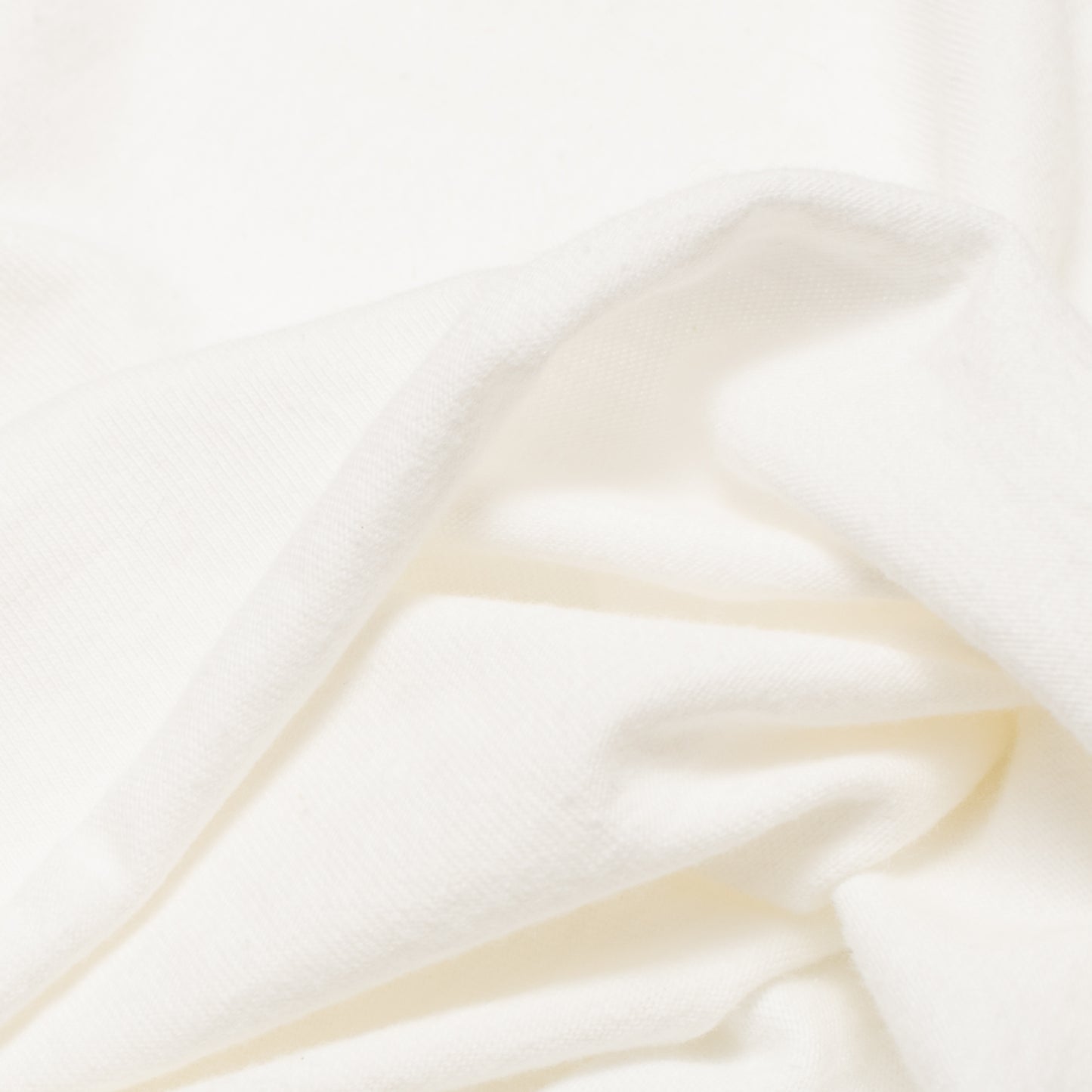 Woven in Japan on suspended weave knitting machine with a raglan sleeve and overlocked hem, which rolls with wear. Due to the width of the machines they are knitted on sizes 34-40 are a seamless tubular knit body, with the larger sizes 42-46 necessitating a side seam.