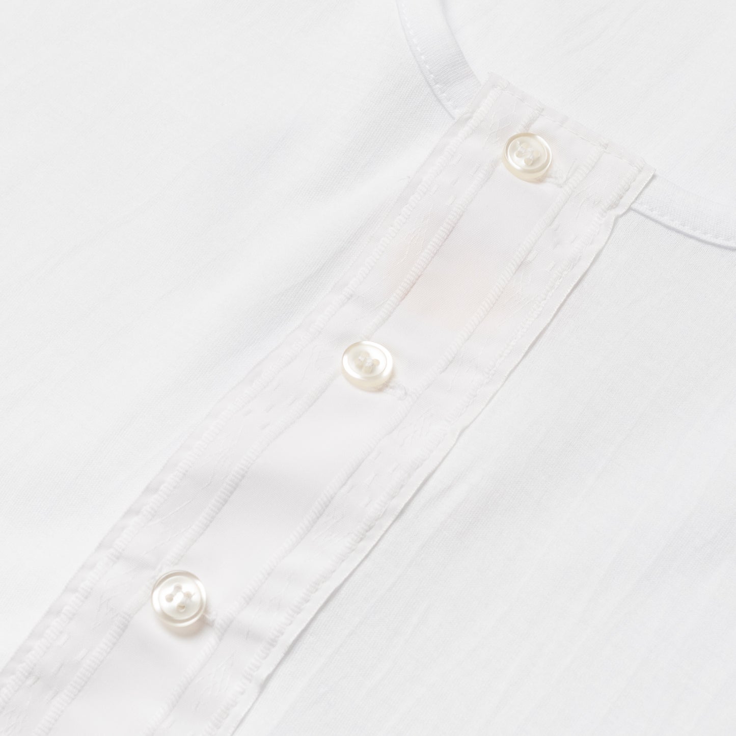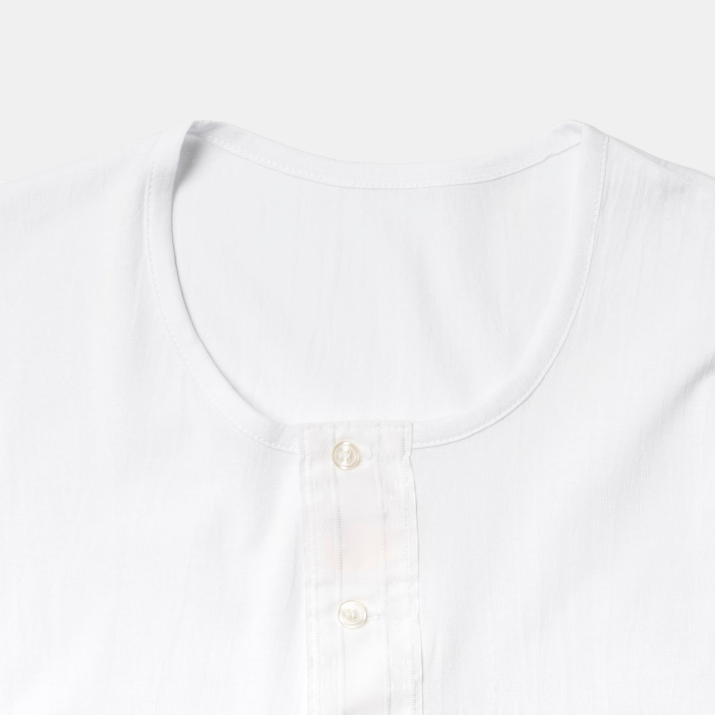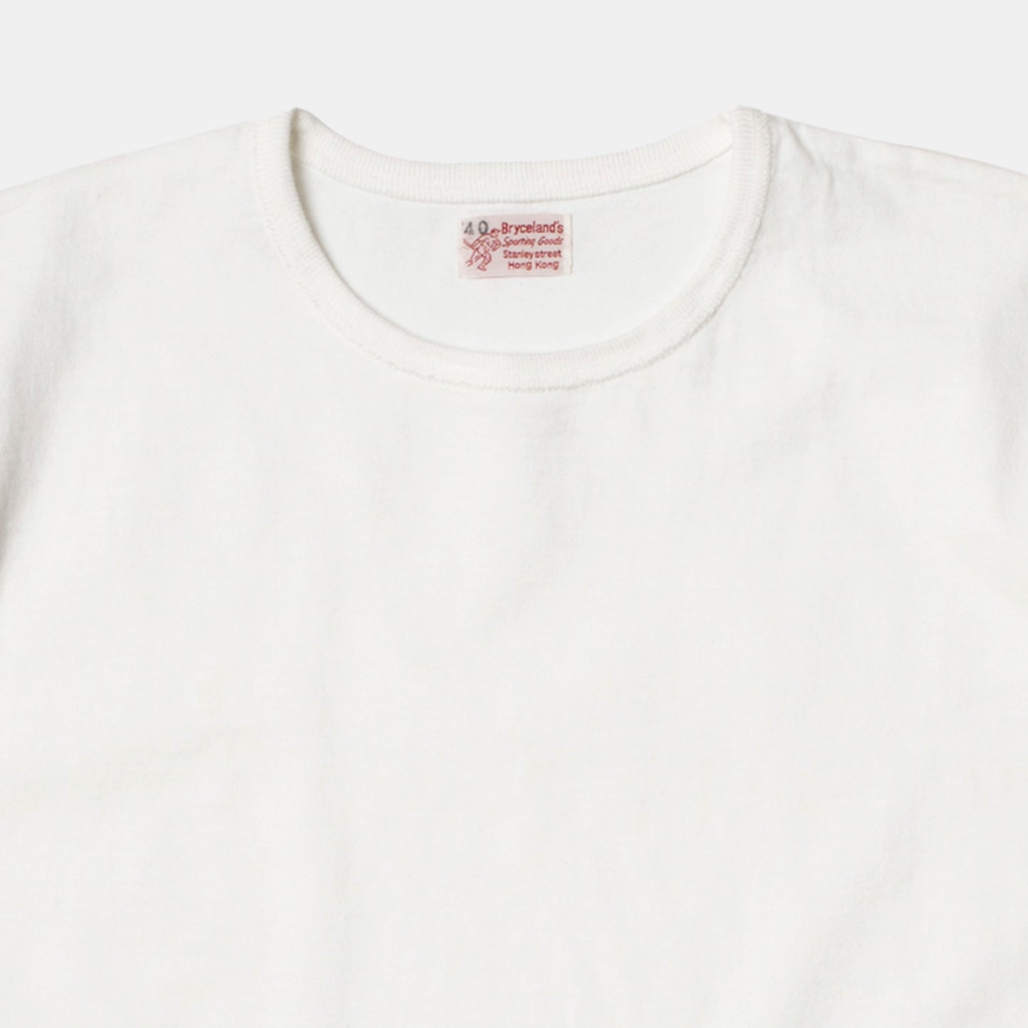 Ours is based on those earliest of undershirts, initially made for the US Army with tubular knitted body, high-arm holes, slightly wider tapped crew neck, and short-stubby sleeves.