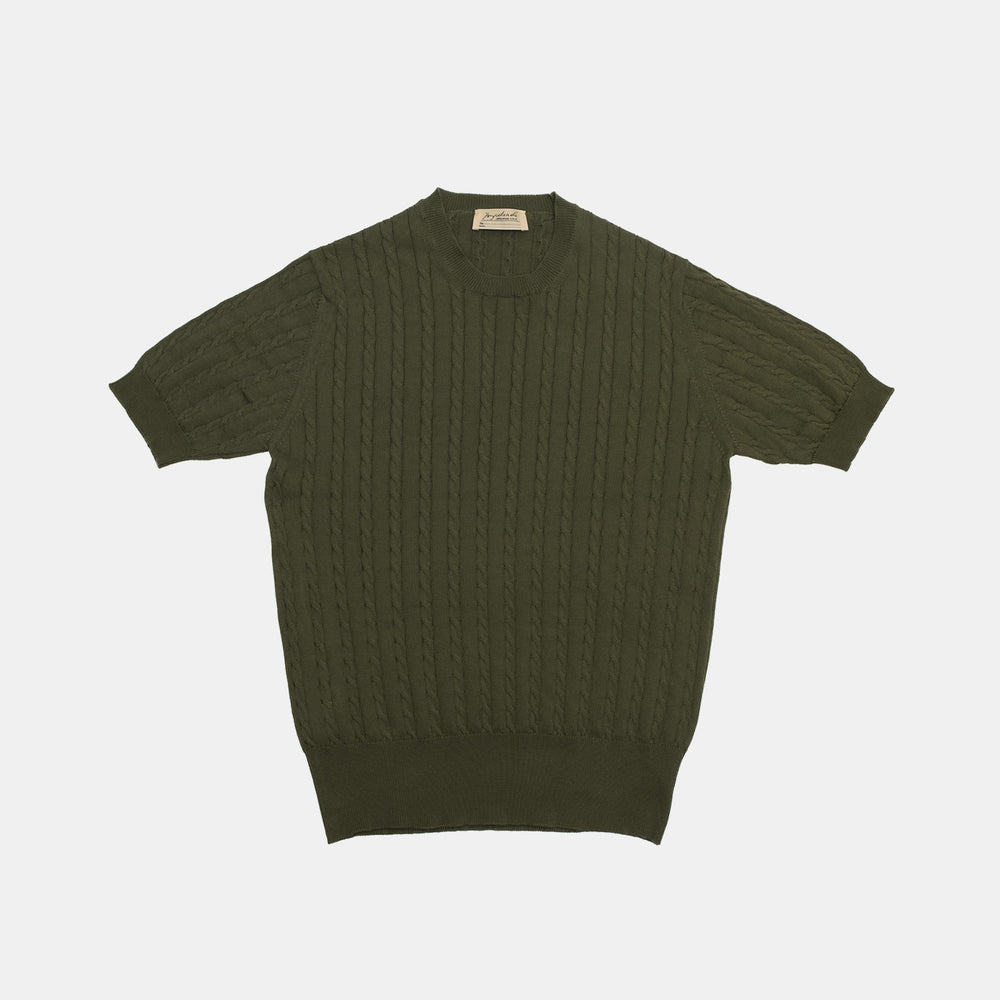 Cotton Short Sleeve ‘Skipper’ Tee Green Cable Knit