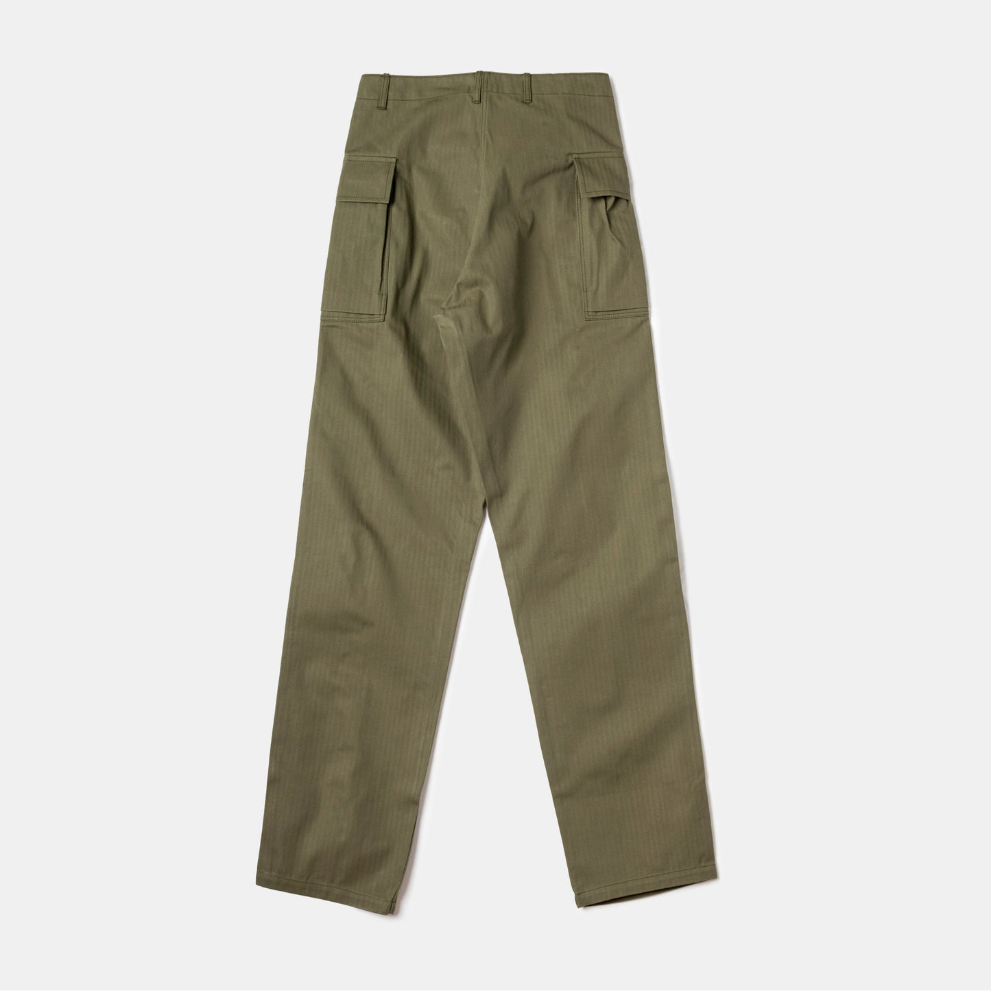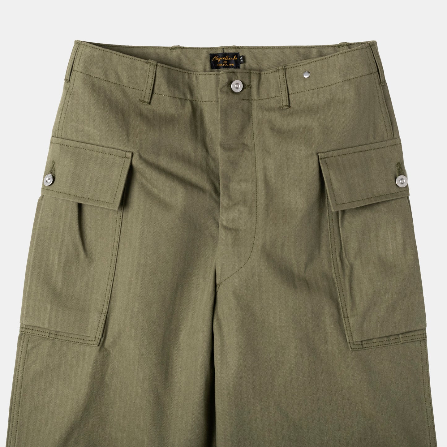 The garments of enlisted men in WWII straddles an unusual paradigm that makes it so appealing to proponents of a classic wardrobe - they were functional garments made to be abused, but cut with the sensibilities of the pre-fashion, pre-mass production world. Trousers like the USMC P-41, P-44 and P-47 and their variants show this. Cut high on the waist without an attached waistband, a full hip and a gentle taper to the leg, they are as reminiscent of a dress-trouser in their form, while being a tank of a garment in their make and fabric.