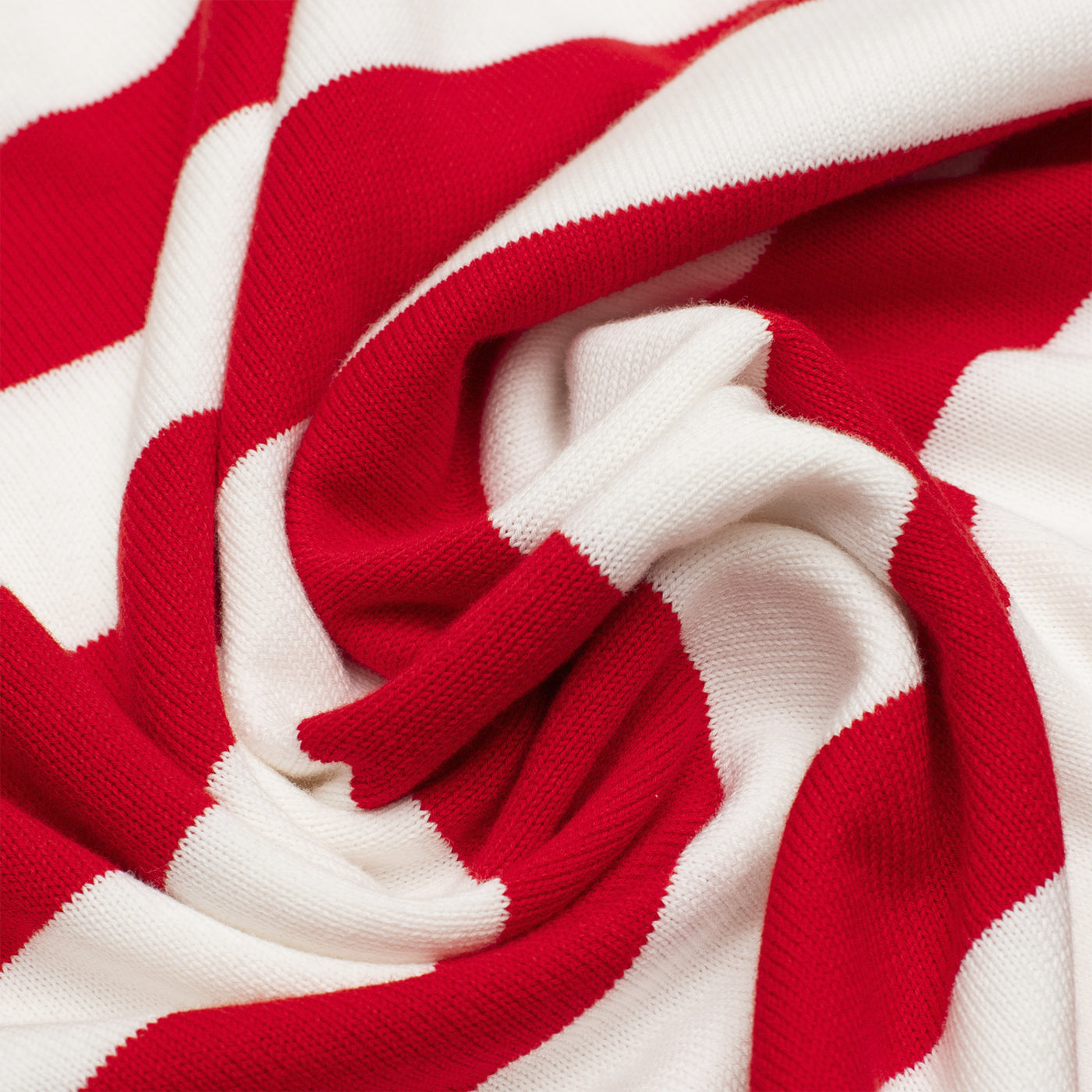 In horizontal block stripes of red and white or blue and white, it references Breton sweaters and 50’s greasers - playful and bold.