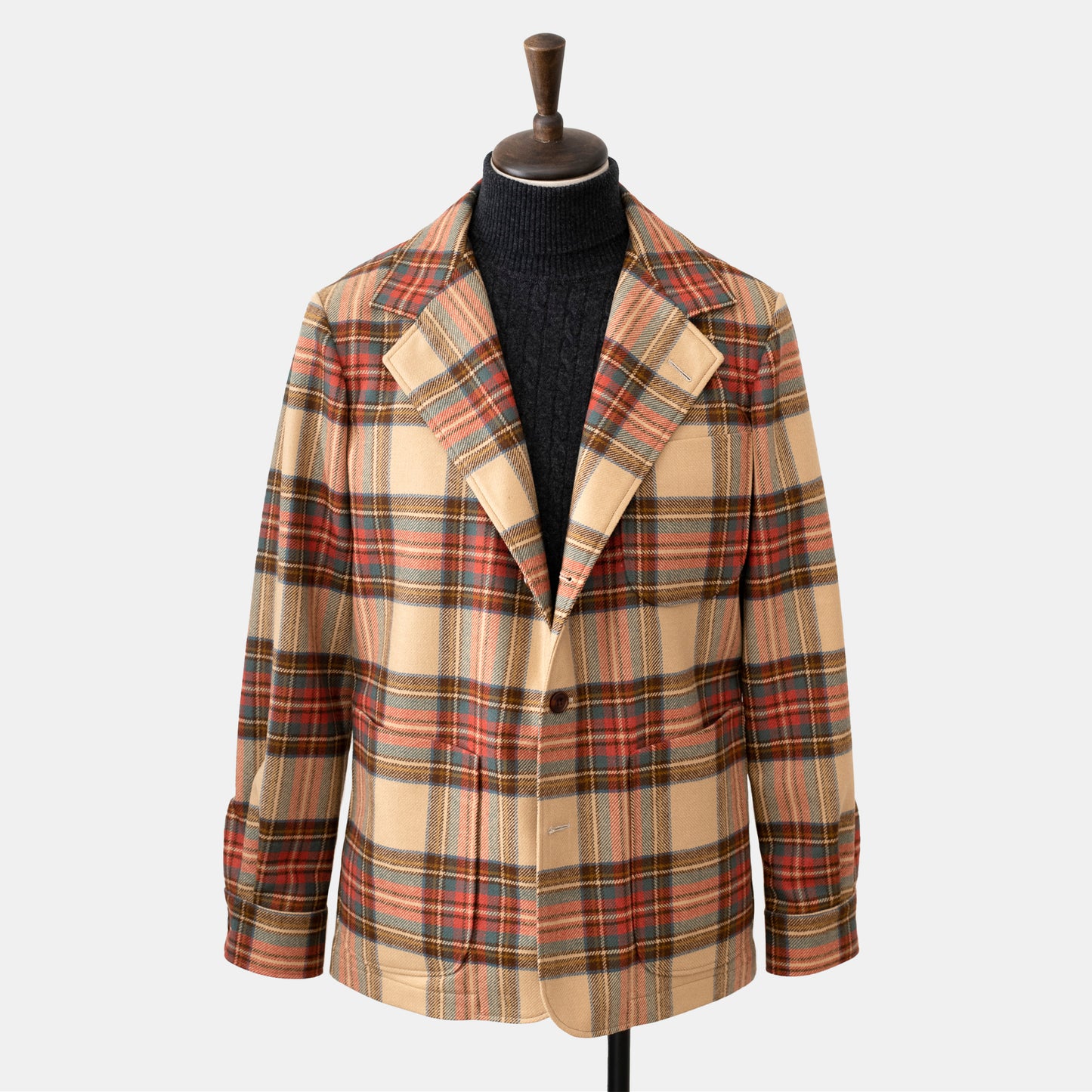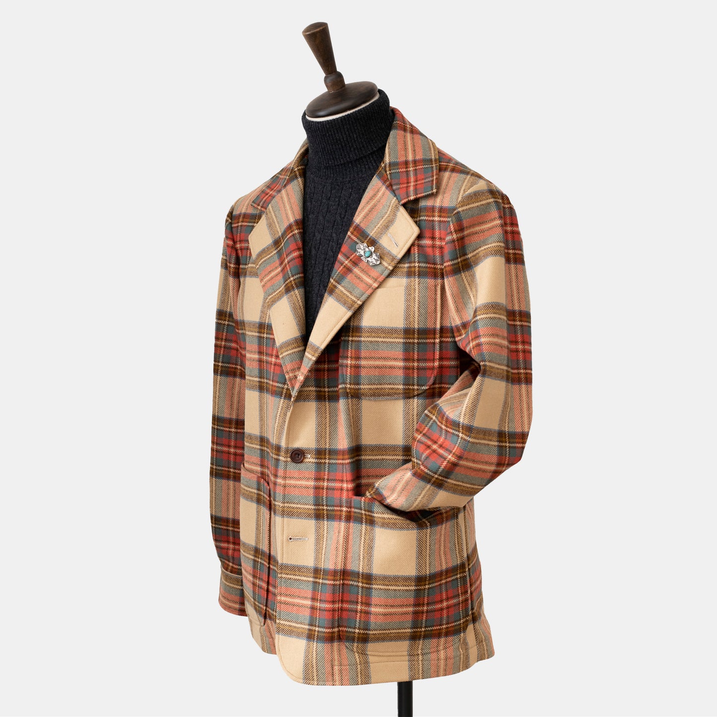 The 'Easy' jacket is a relaxed interpretation of a 1950s Pendelton 'shirt-jacket'. Cut in a house style to give a drape, flow and an elegant aesthetic; bringing to mind beat poets and jazz musicians of the time. Worn loose, with little structure apart from the natural lines of the shoulder, off which the sleeve sits, the three - two lapel drapes down the chest, naturally weighted by the fabric. Hanging straight from the chest the ventless body allows for flow of movement and a laissez-faire feel to how the jacket should be worn.