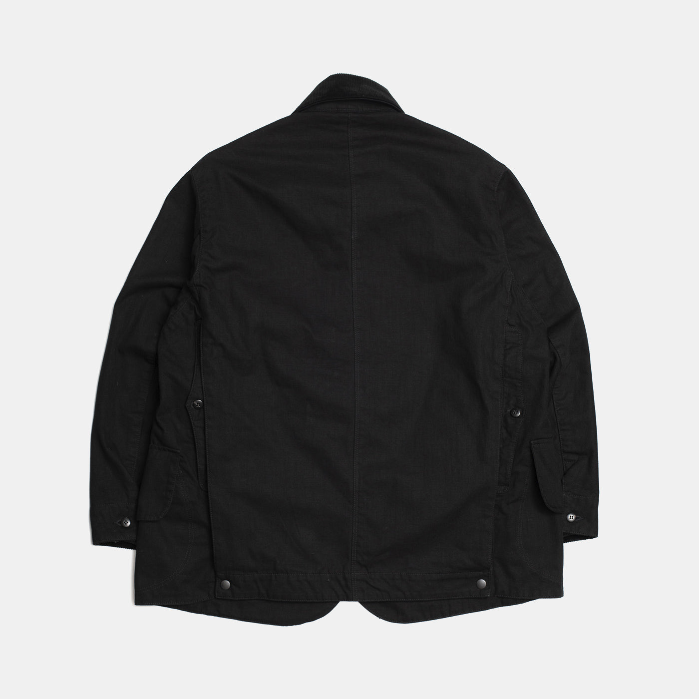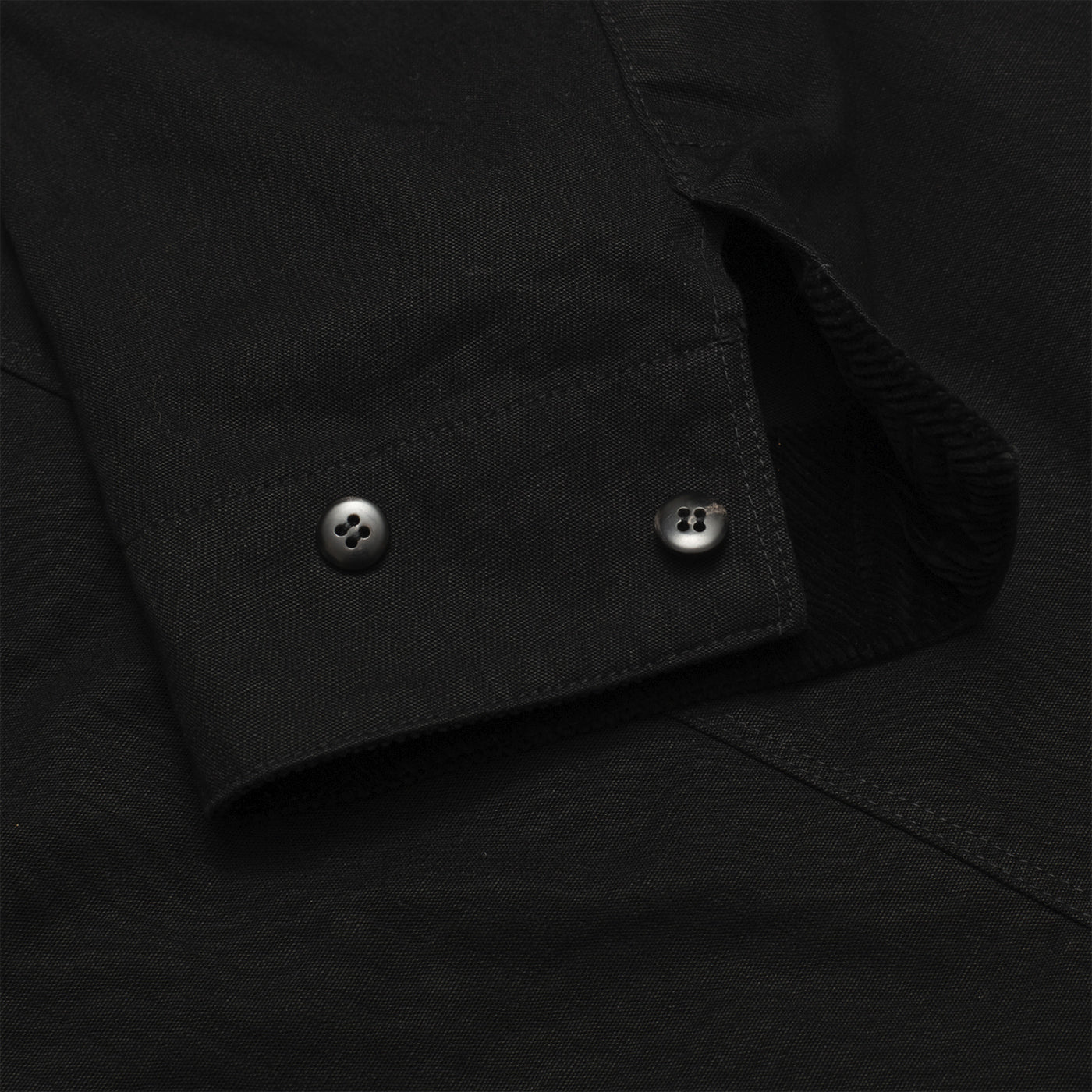 Based on a 30’s duck cloth hunting jacket, ours is made in Okayama from a locally milled black duck cloth, a tightly woven plain weave canvas with a long heritage of work and sportswear applications.