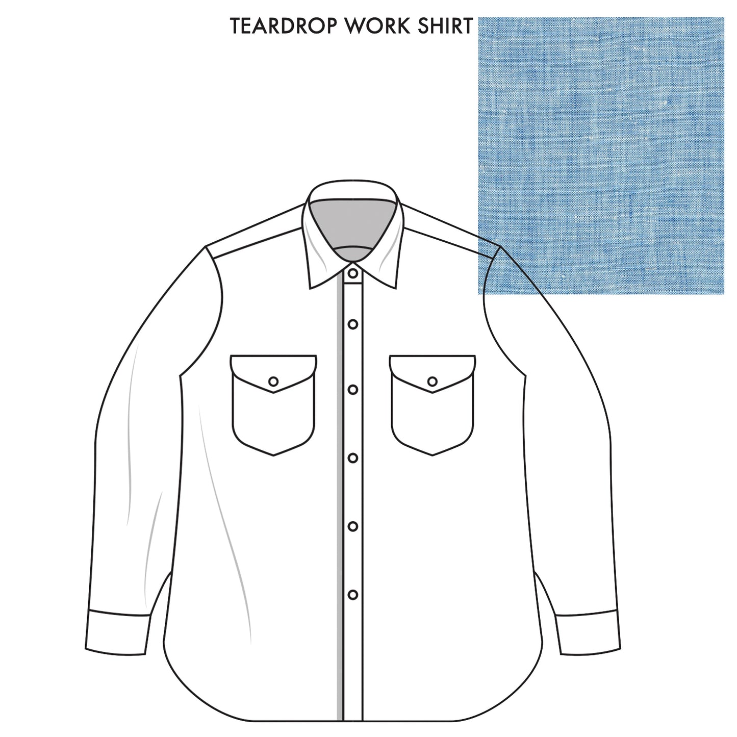 Teardrop Work Shirt Made-to-Order Light Blue Melange Linen