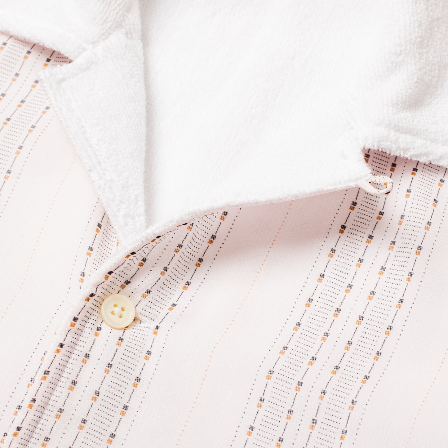 With a dream of 1960’s resort life, tiki bars and Palm Beach poolside glamour, the towel shirt is a nod to life well lived and summers devoted to relaxation.