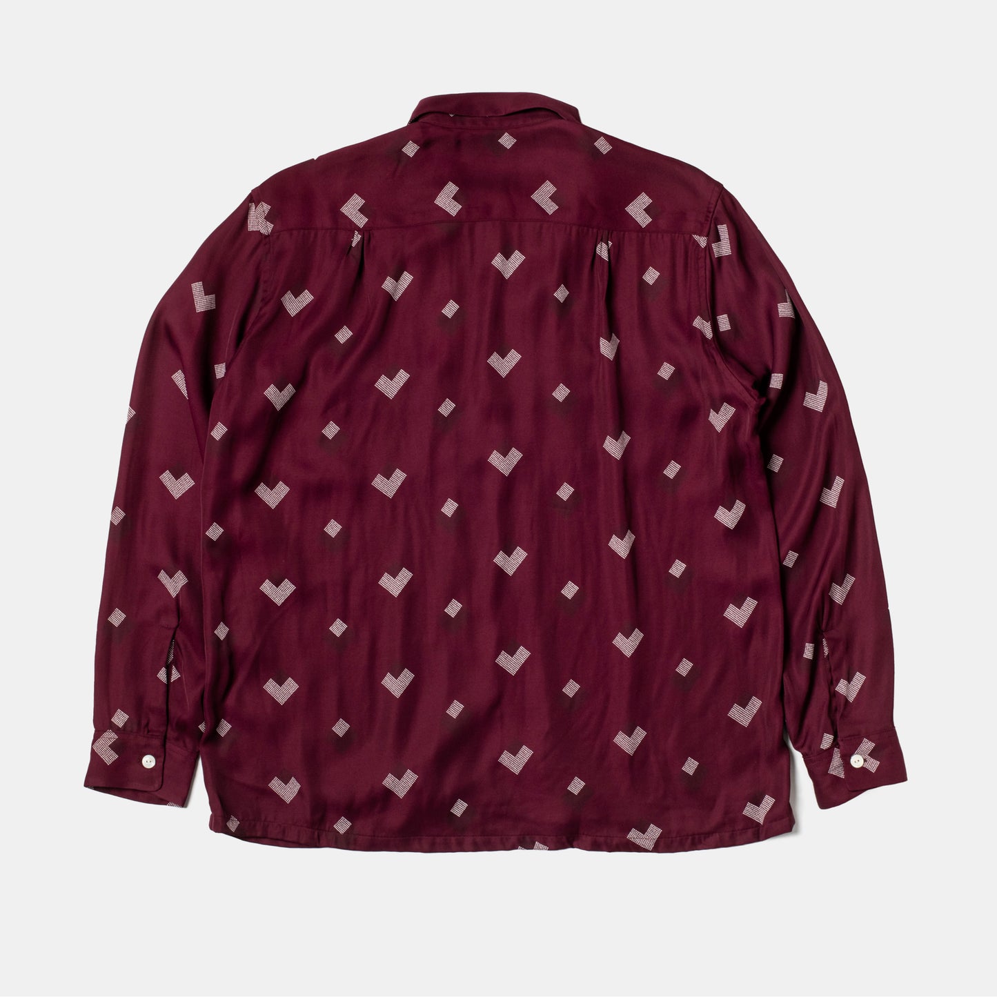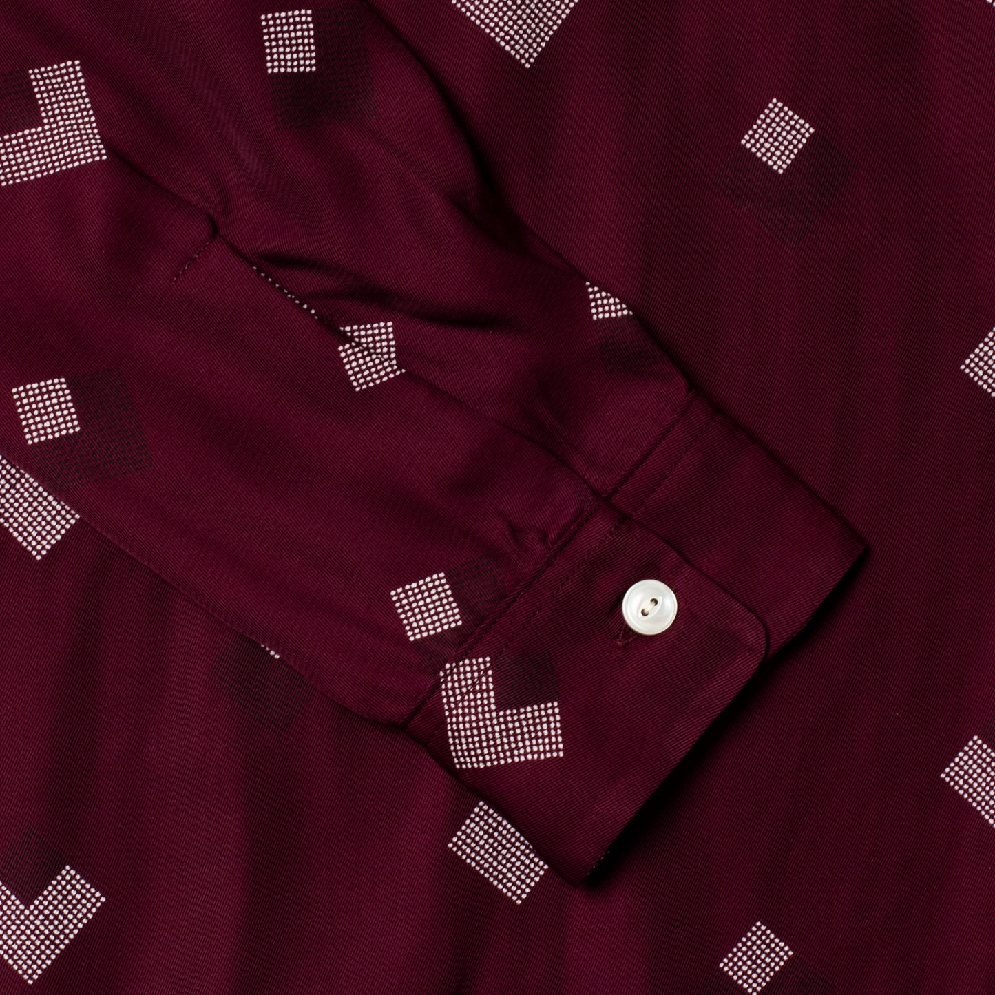 Dreaming of 50’s West Coast elegance, the Rayon Sports Shirt with its generous camp collar, pearl buttons and flapped patch pockets is all drape and slouch, a little luxury in our wardrobes. Based on the classic long-sleeved Hawaiians and Resort style shirts of the 50’s, it is a model cut to be worn bloused in to high-waisted trousers. It speaks of ease and comfort and a quiet confidence, regardless of its print.